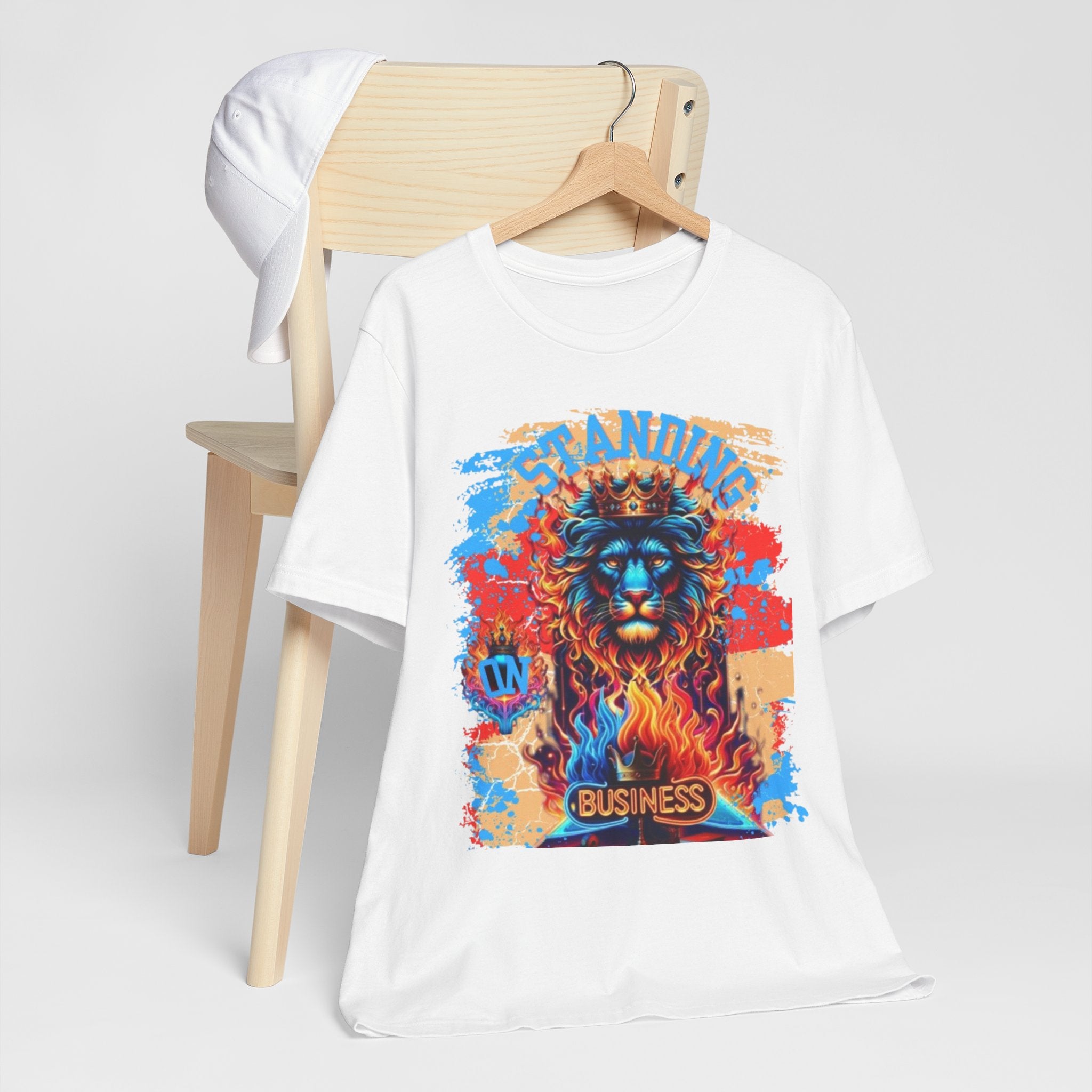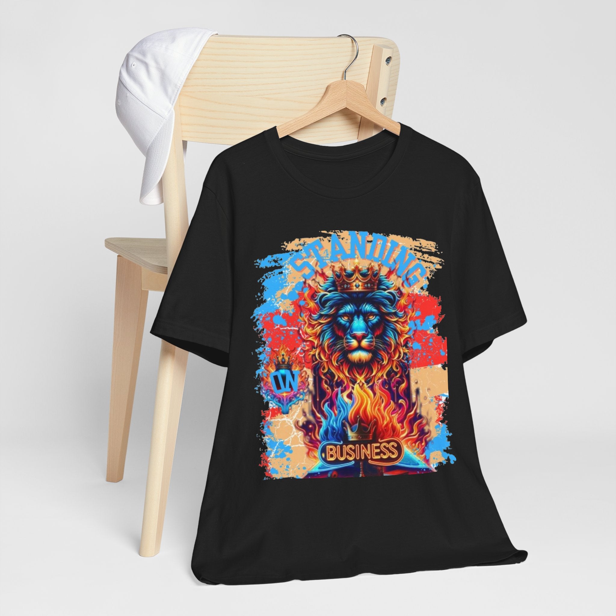 STANDING ON BUSINESS IN BLUE FIRE IN FRONT OF BIBLE (UNISEX)
